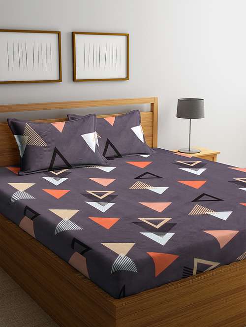 - » klotthe grey floral 210 tc cotton blend elasticated double bedsheet with 2 pillow cover
