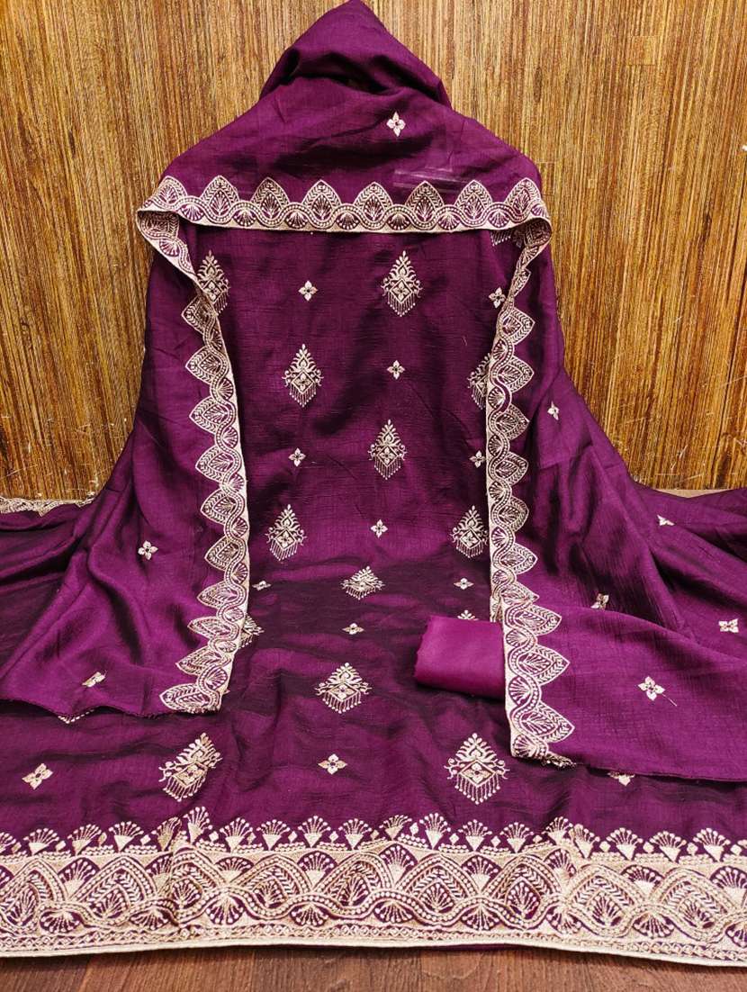 - Look ultra gorgeous in unstitched suits from Leeli Peeri Designer and grab these beautiful suits in purple colour.