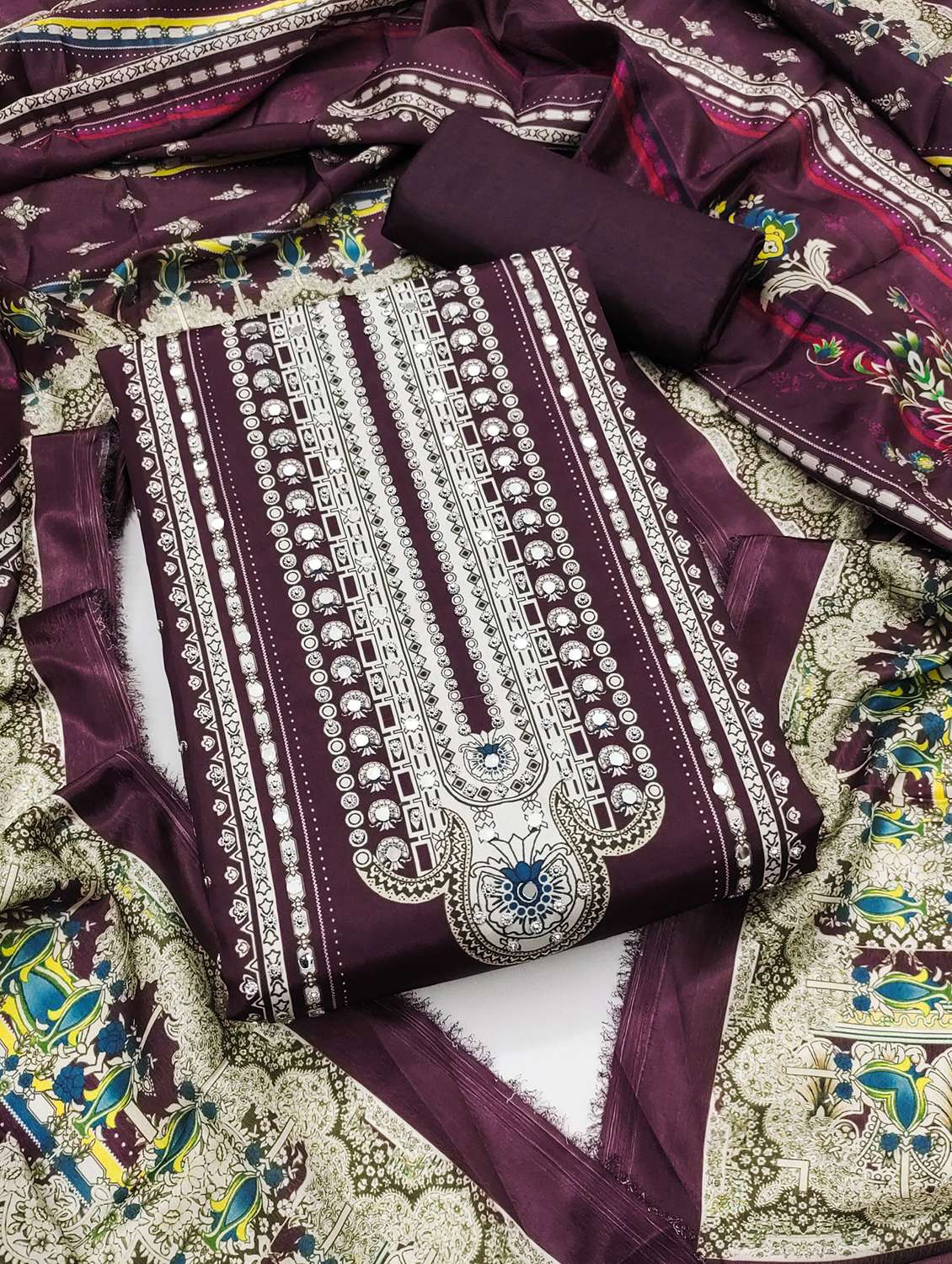 - Look ultra gorgeous in unstitched suits from Leeli Peeri Designer and grab these beautiful suits in purple colour.
