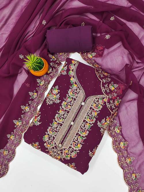 - Look ultra gorgeous in unstitched suits from Leeli Peeri Designer and grab these beautiful suits in purple colour.