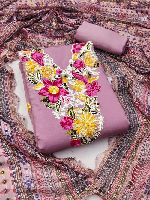 - Look ultra gorgeous in unstitched suits from Leeli Peeri Designer and grab these beautiful suits in purple colour.