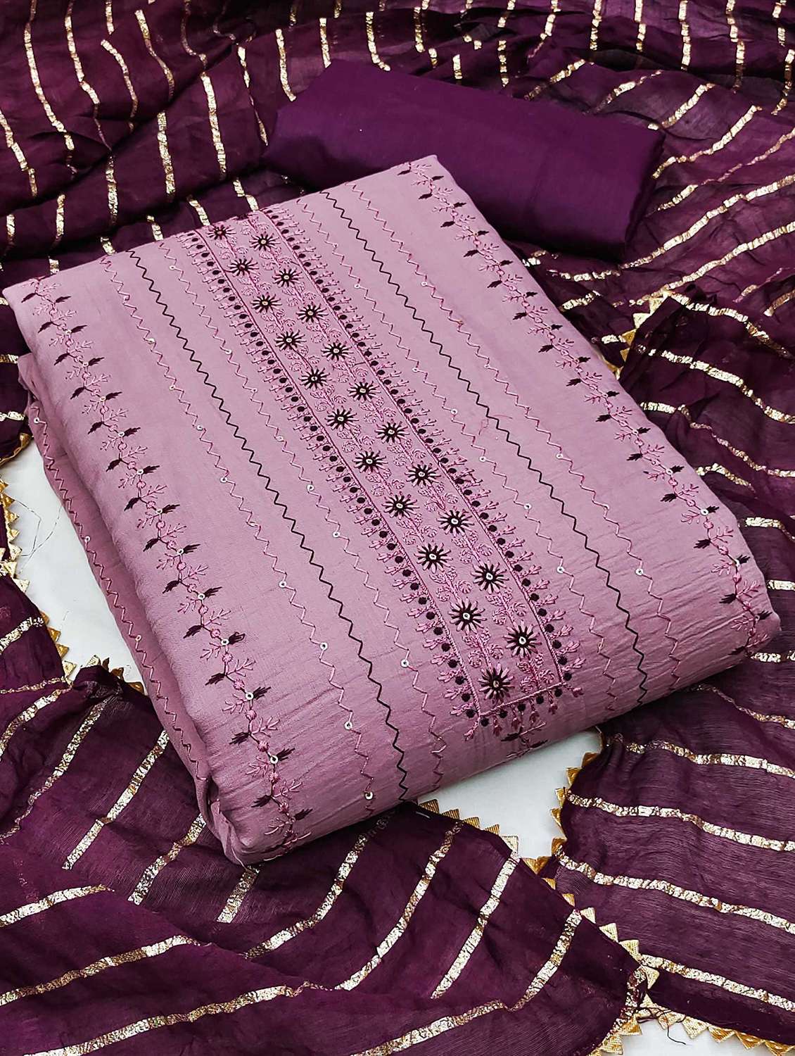 • Look ultra gorgeous in unstitched suits from Leeli Peeri Designer and grab these beautiful suits in lavender colour.
