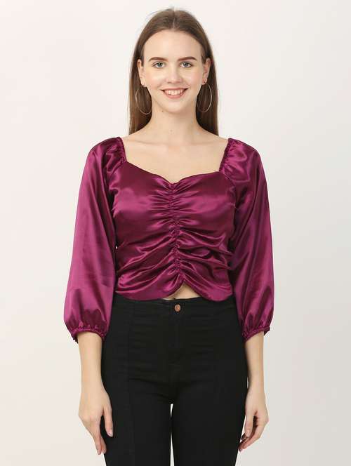 solid purple detailed crop top