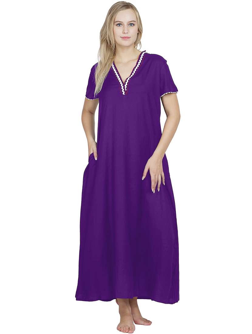 v-neck solid nighty - 20033662 - Very Small Image - 1