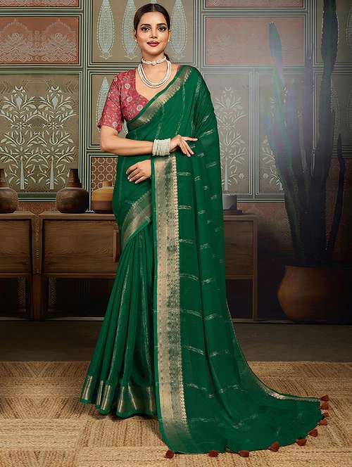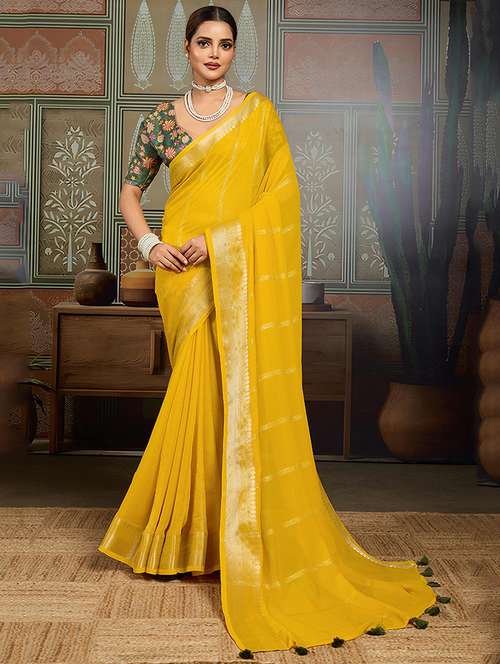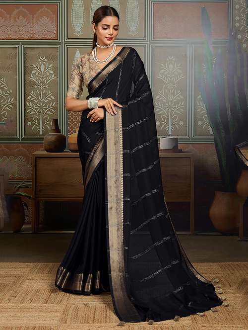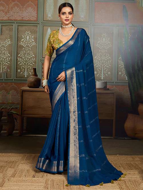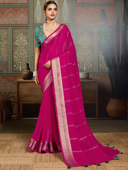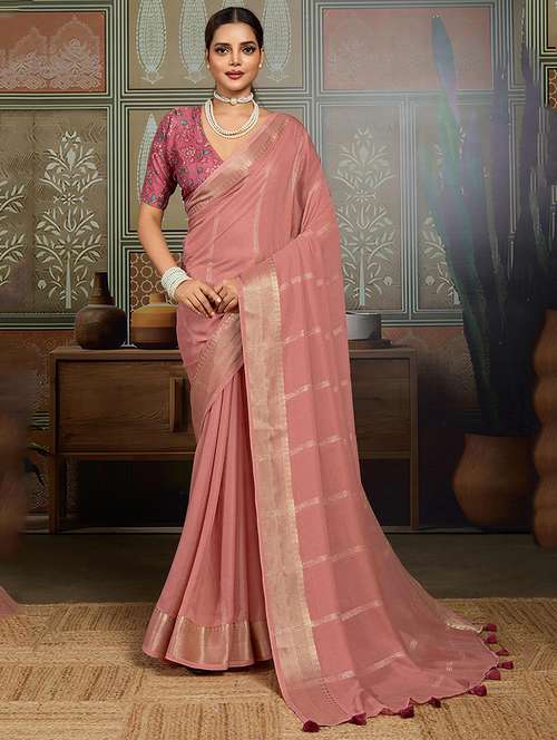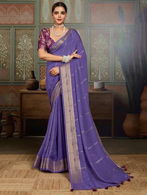 This Purple Bemberg saree features a traditional striped pattern highlighted with intricate zari weaving and a tassel-detailed pallu, adding a festive and elegant touch. Crafted from premium Bemberg fabric, it offers a lightweight, breathable texture with a fluid drape that moves gracefully. The saree comes with an unstitched tusser cotton silk blouse piece with a delicate digital print, allowing you to customize it to your preferred style. Ideal for daytime celebrations, festive functions, or evening gatherings, this saree beautifully blends traditional artistry with modern charm.