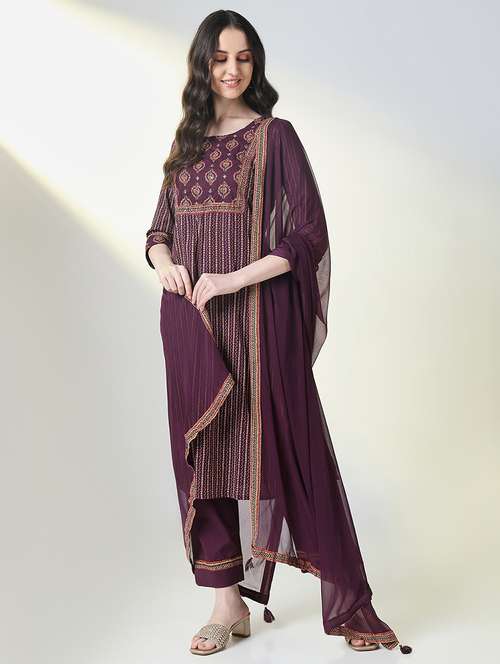 women three quarter sleeve kurta pant with dupatta set - 21697079 - Very Small Image - 1