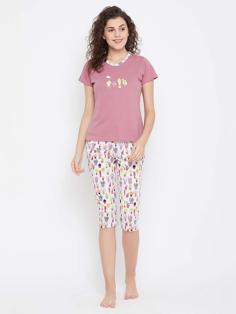 - » round neck printed nightwear capri set