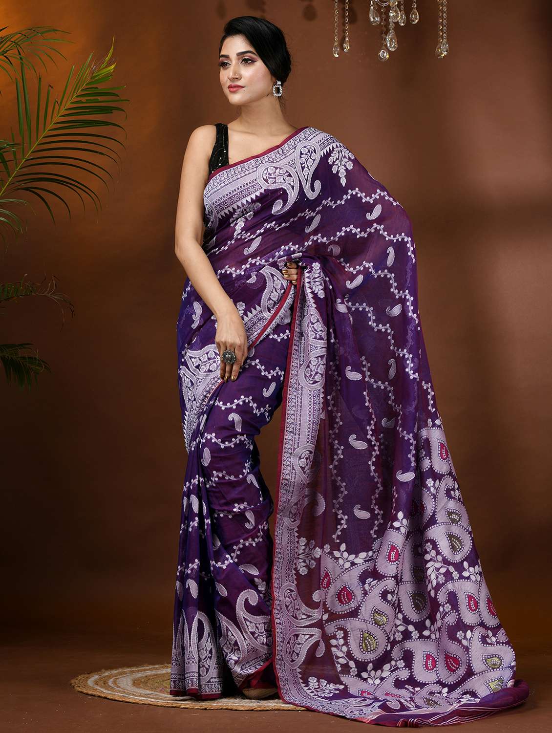 - » women purple jamdani saree