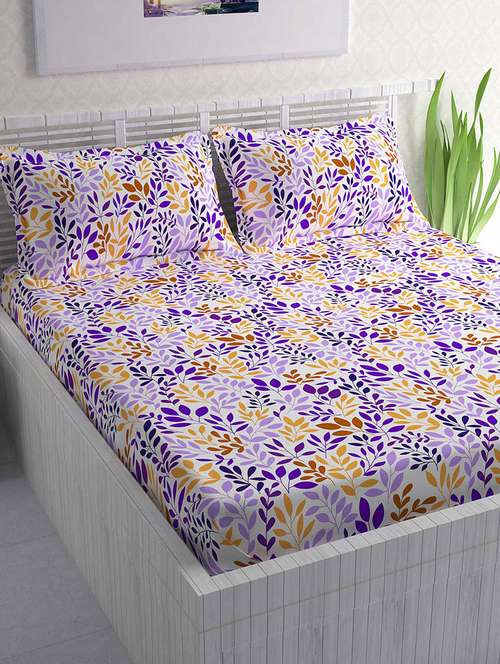 leaf 144 tc 100% cotton double bedsheet with 2 pillow covers