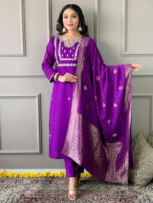 women three quarter sleeve kurta pant with dupatta set - 21954175 - Very Small Image - 1