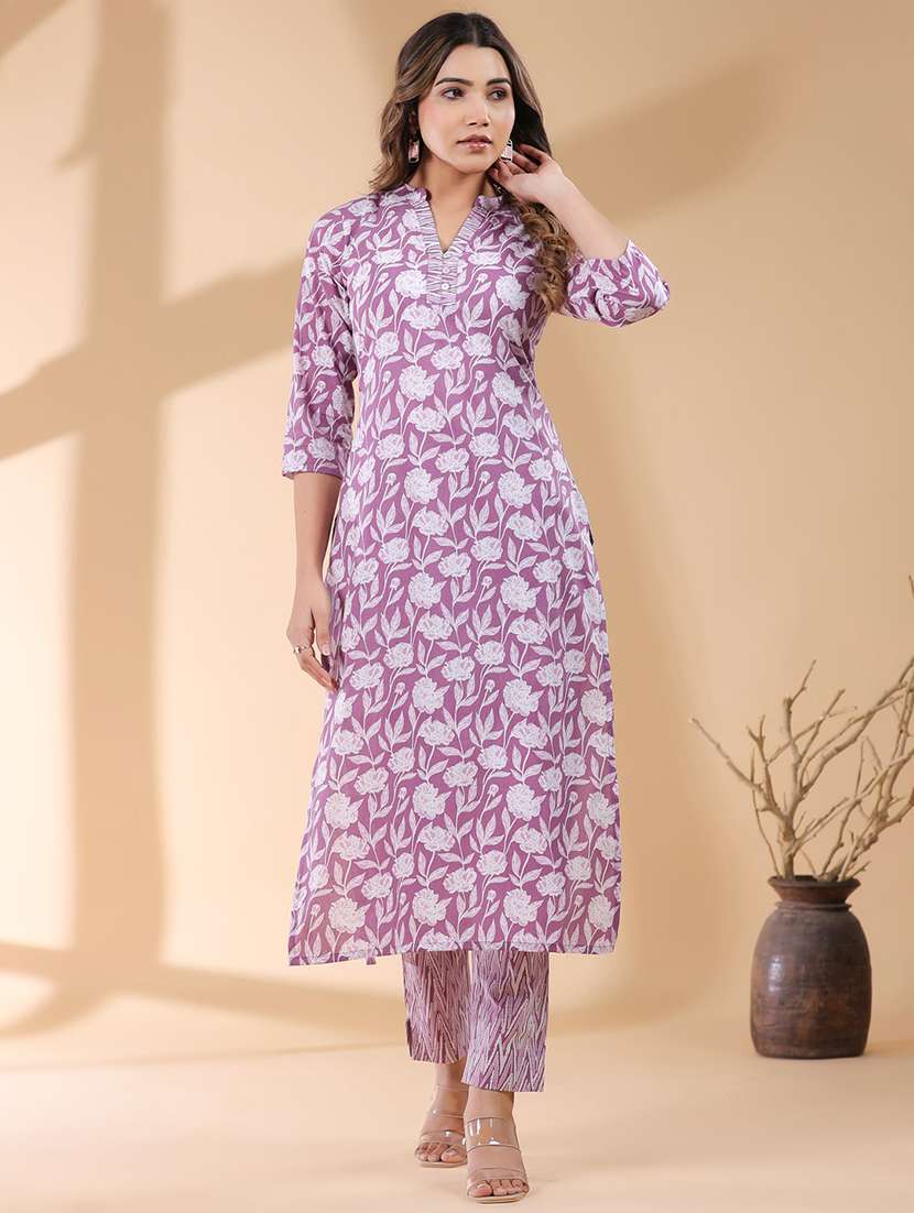 - » women lavender three quarter sleeve kurta pant set