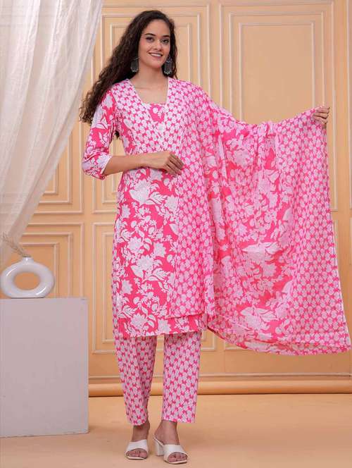 - » women floral printed three quarter sleeve kurta pant with dupatta set