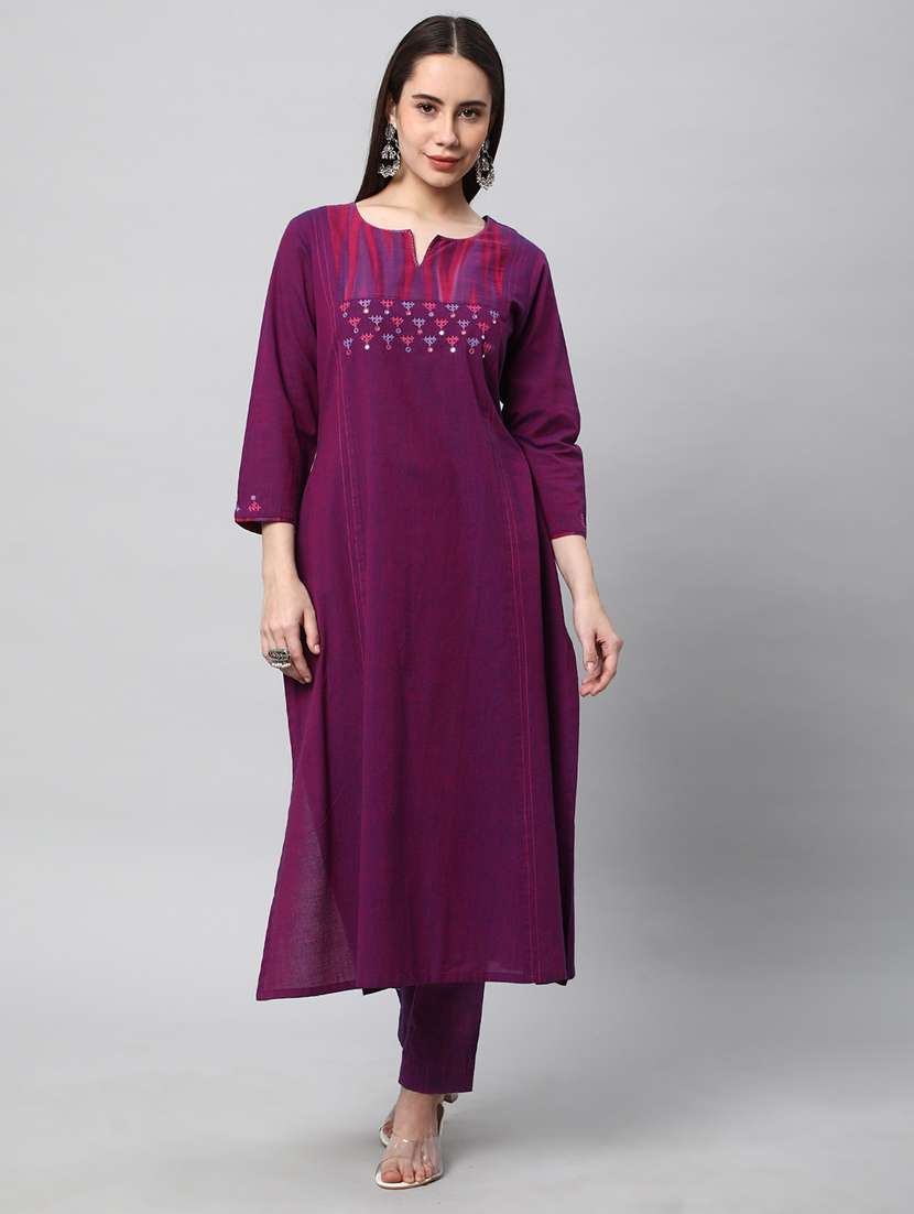- » purple three quarter sleeve a-line kurta