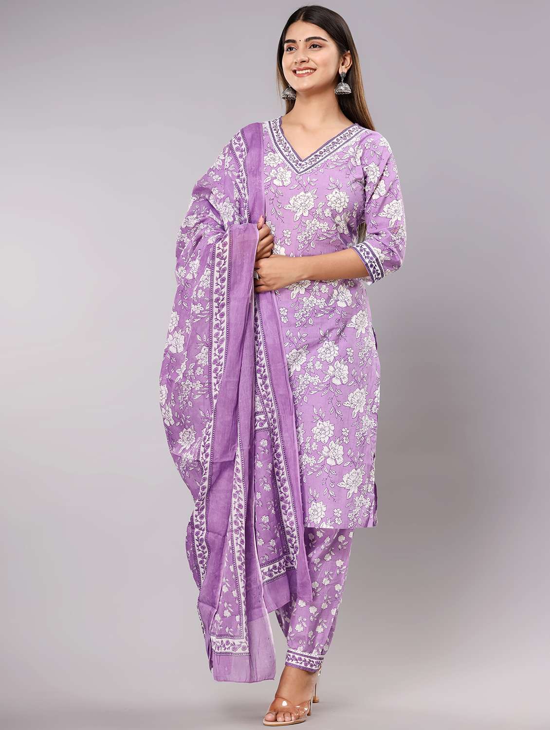 women purple kurta salwar set with dupatta