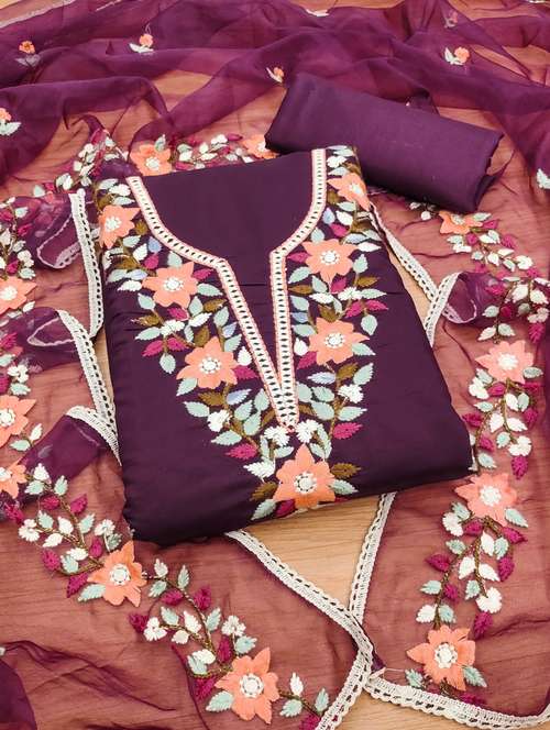 - Look ultra gorgeous in unstitched suits from Leeli Peeri Designer and grab these beautiful suits in purple colour.