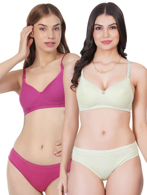 Liigne Women Everyday Padded Bra Panty Set (Pack Of 2) - This Lingerie Set Made of Pure Cotton