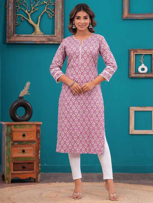 - Grab this beautiful kurta made up of cotton fabric featuring notch neck designs.
