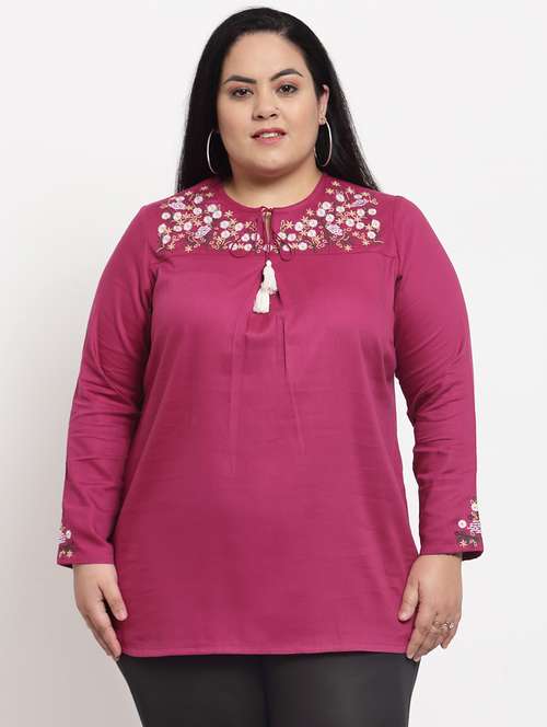 - » tie up neck embroidered plus top