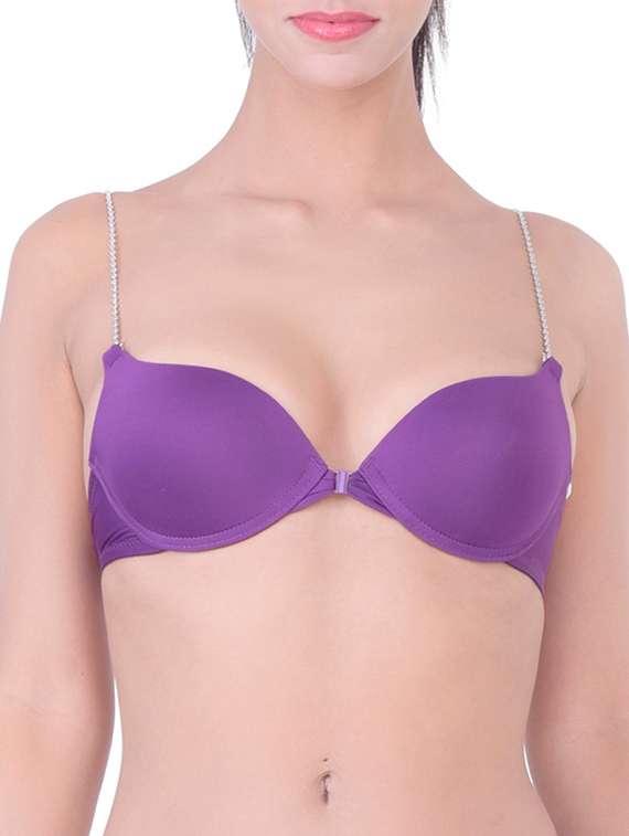 PrettyCat Flaunt Your Straps In Style Front Open Pushup Bra, Is A Multi Utility Bra, Comes With Two Straps Stone Strap Elastic Strap , Two Straps Gives Choice ,Stone Straps For Party And Normal Straps For Daily Wear,Can Be Converted Into Halterneck Cross Back Regular Straps,Front Open For Ease ,Pushup Bra, Seamless Cups,Underwired For Extra Support,Very Slim Back For Deep Back Clothes.