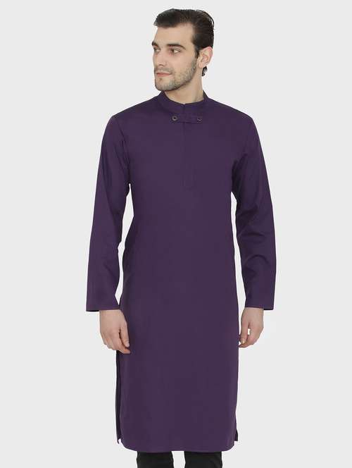 purple cotton long kurta - 16080157 - Very Small Image - 1