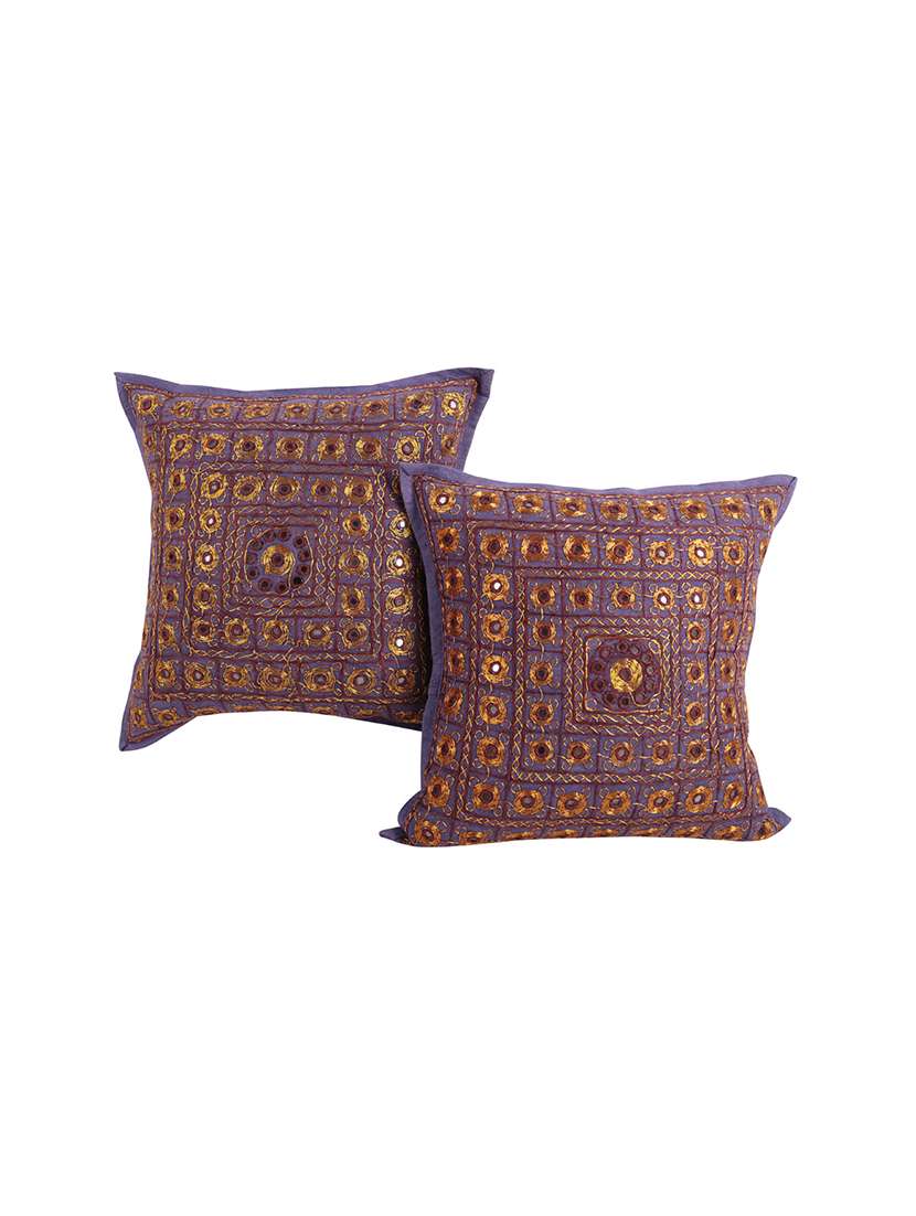 - » rajrang embroidered with mirror work cotton set of 2 cushion cover