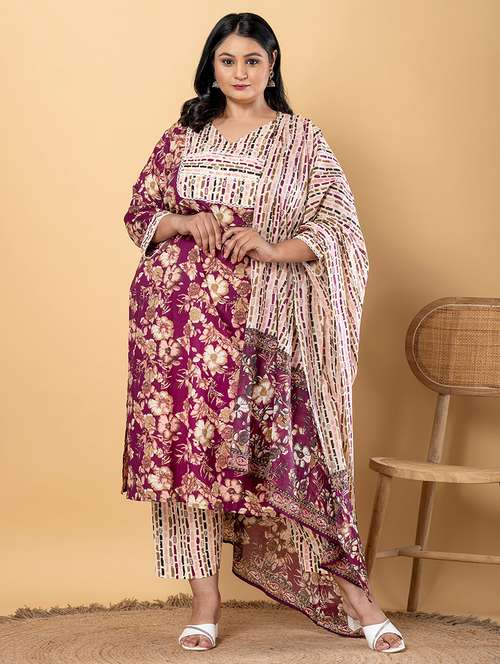 - Find gorgeous sets of ethnic wears in trending designs in purple colors suitable for casual wear of occasions.