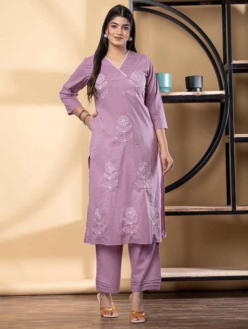 - Find gorgeous sets of ethnic wears in trending designs in purple colors suitable for casual wear of occasions.