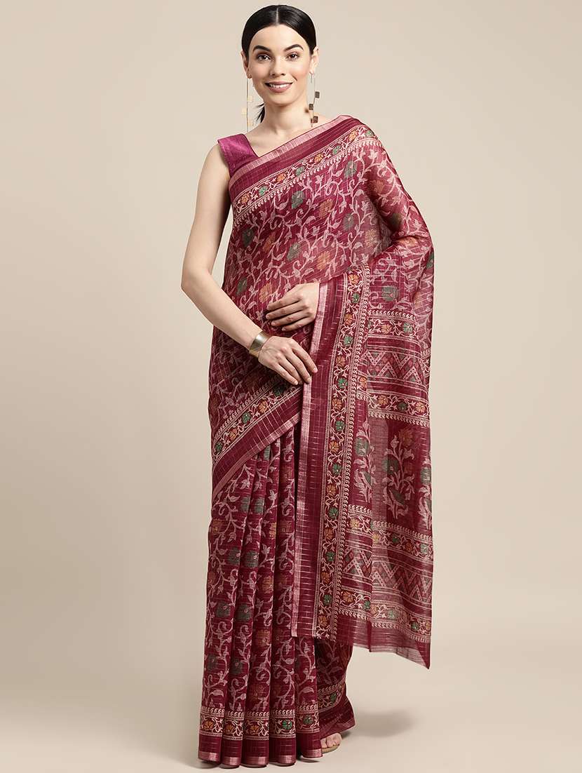 SANGAM PRINTS Purple Cotton Thread Woven Work Traditional Saree