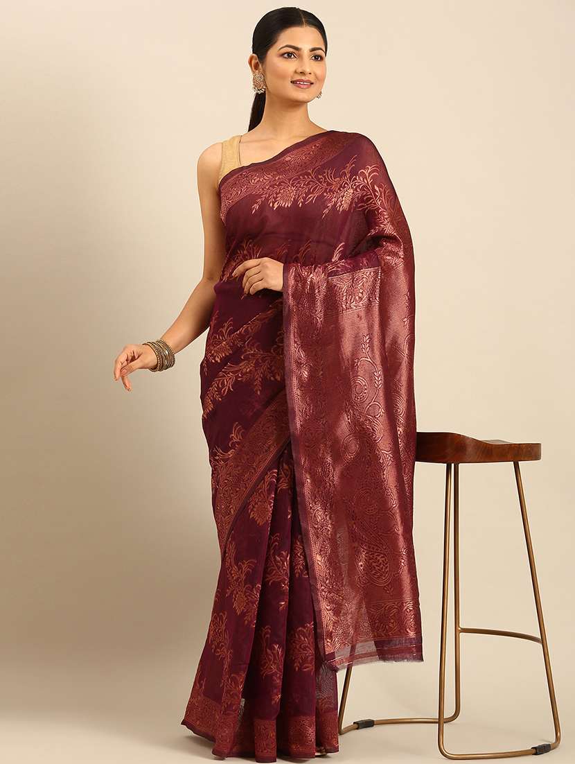 Sangam Prints Purple Cotton Woven Work Traditional Saree