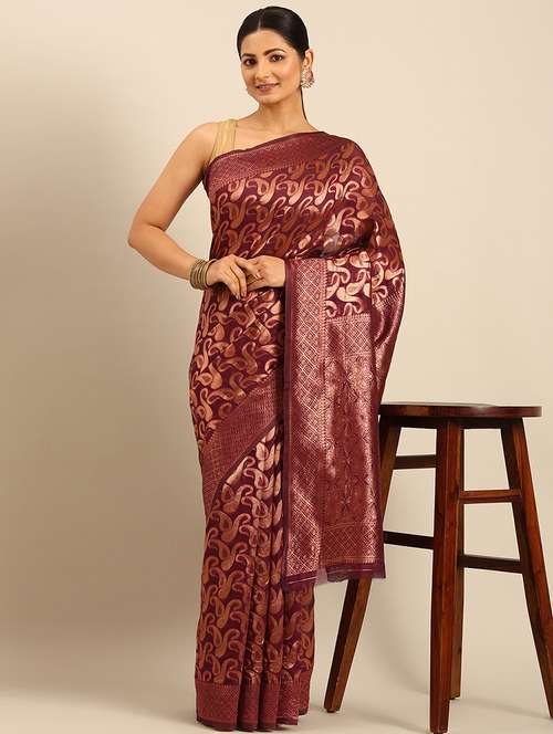 Sangam Prints Purple Cotton Woven Work Traditional Saree