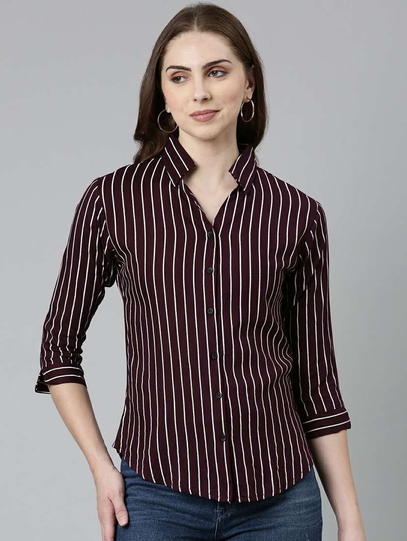 purple striped three quater sleeves regular shirt