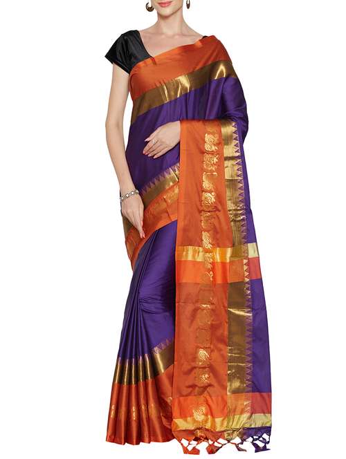 - » purple cotton silk handloom saree with blouse