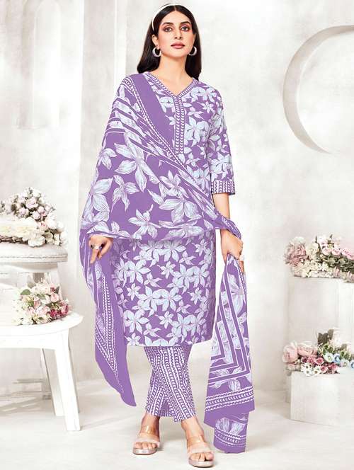 - Find gorgeous sets of ethnic wears in trending designs in lavender colors suitable for casual wear of occasions.