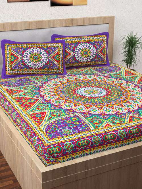 - » 120 tc pure cotton printed double bed sheet with 2 pillow covers
