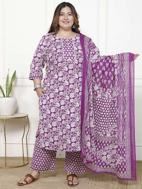 • Find gorgeous sets of ethnic wears in trending designs in purple colors suitable for casual wear of occasions.
