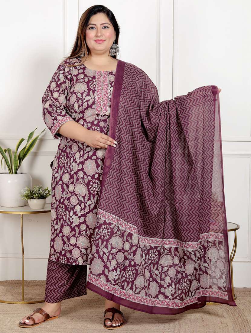 • Find gorgeous sets of ethnic wears in trending designs in purple colors suitable for casual wear of occasions.