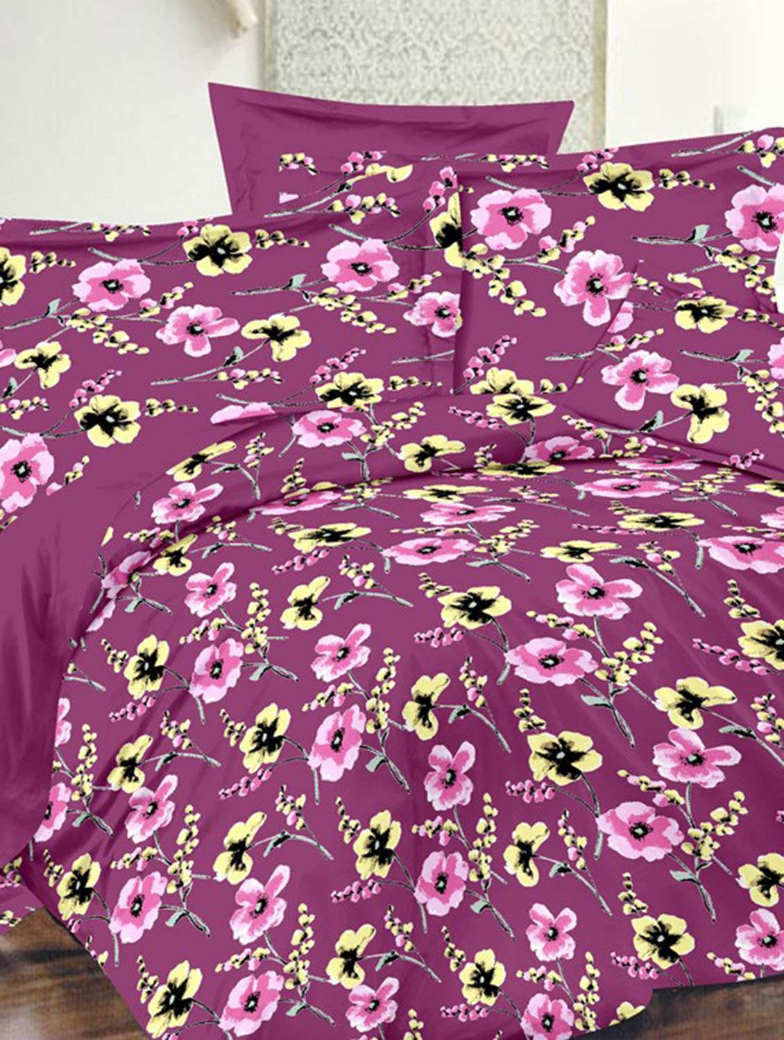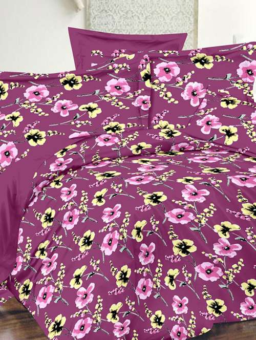 - » valtellina floral purple cotton double bed sheet with 2 pillow cover - tc-250