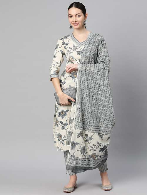 women floral three quarter sleeve kurta pant with dupatta set