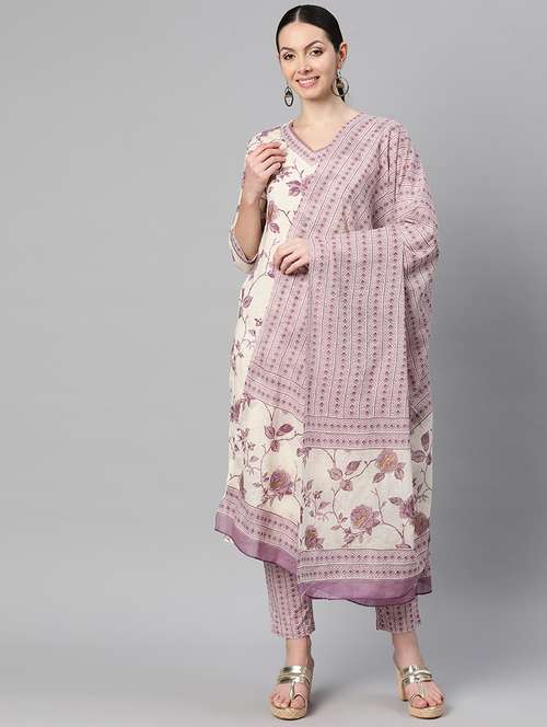 - Find gorgeous sets of ethnic wears in trending designs in purple colors suitable for festive wear of occasions.