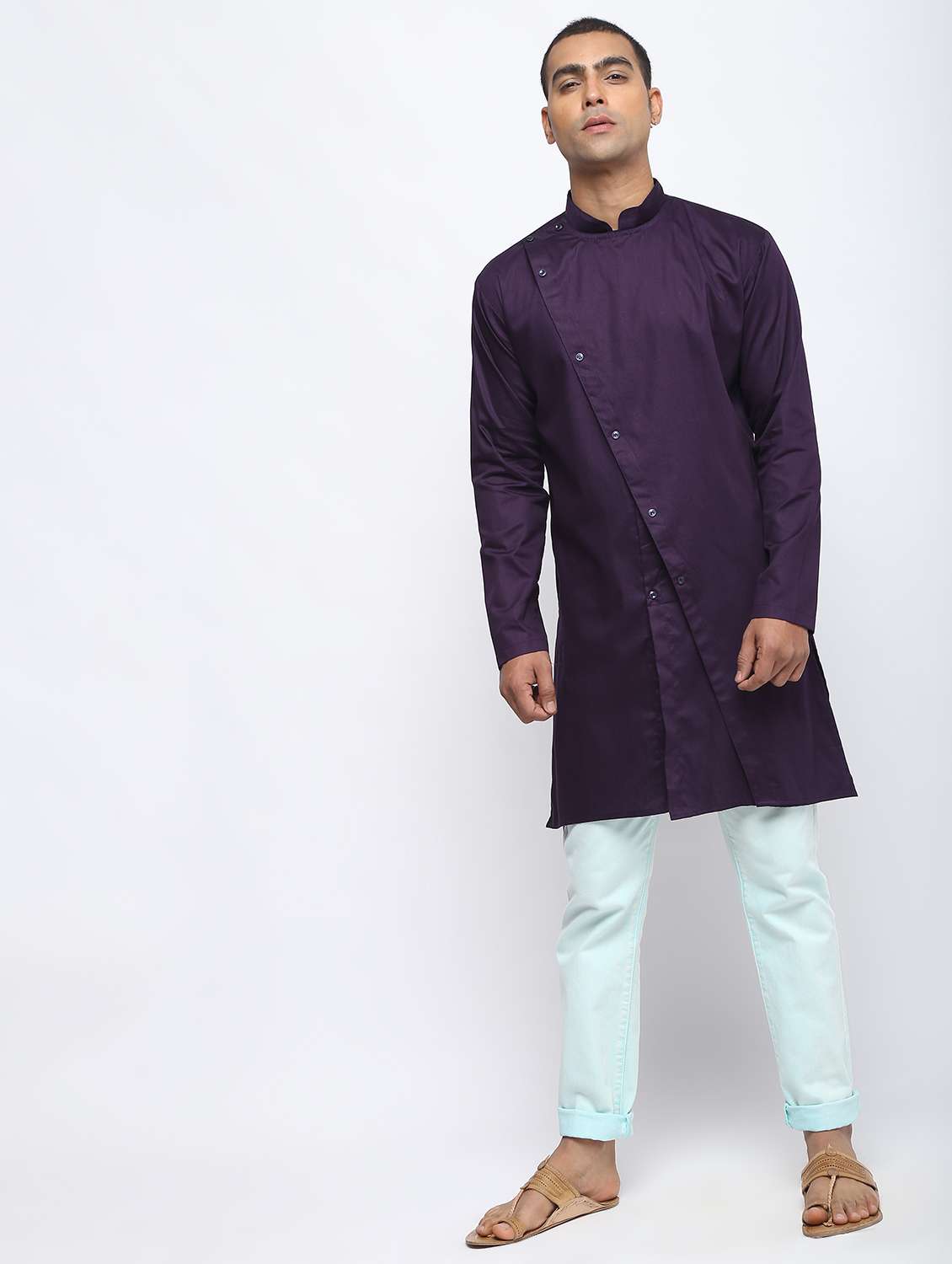 purple solid long kurta