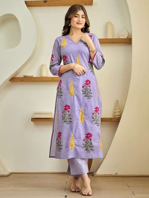 - Find gorgeous sets of ethnic wears in trending designs in purple colors suitable for festive wear of occasions.