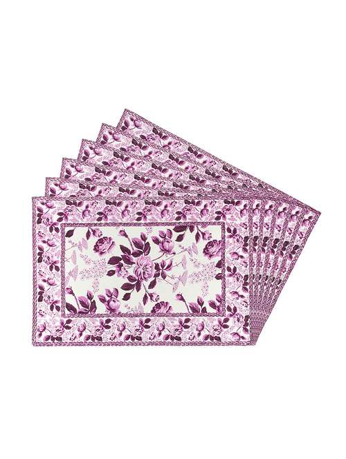 Purple Printed Cotton Canvas Placemats for Dining Table - Unique Designs - Set of 6