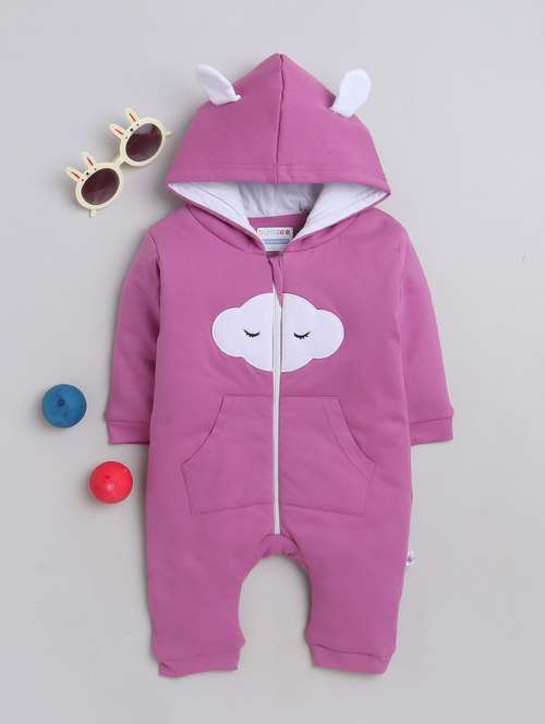 - » girls hooded neck printed full length romper