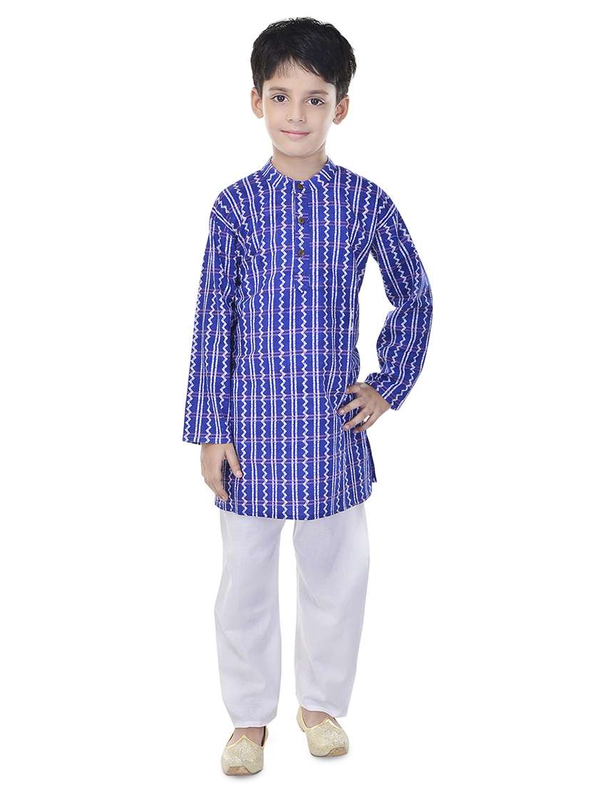 mandarin neck printed kurta with pajama set  - 17734395 - Very Small Image - 1