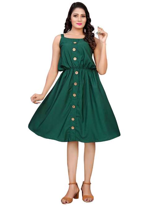 - Dress up in a soothing pattern and don this dress made of crepe material.