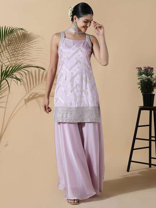 - » women lavender shoulder strap kurta palazzo set