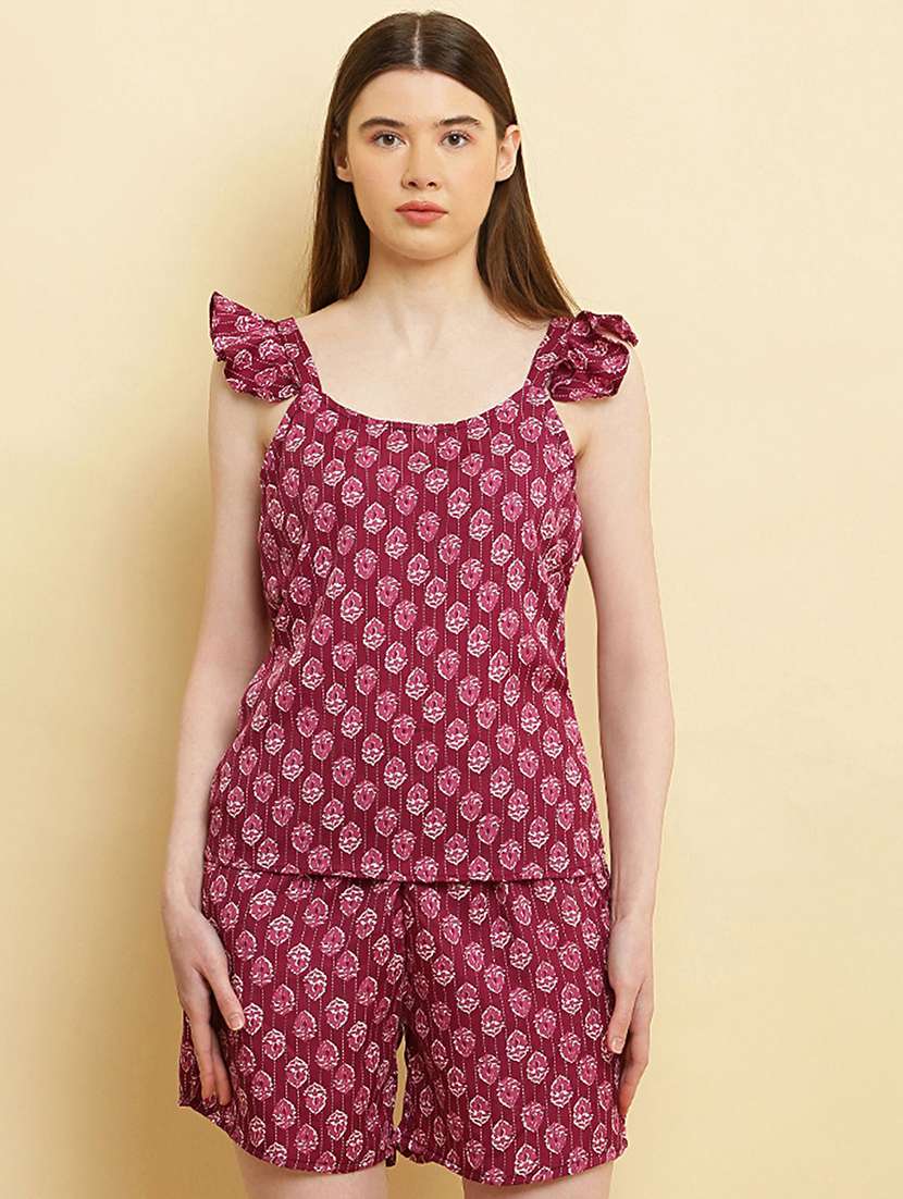 - » women round neck printed shorts nightwear set