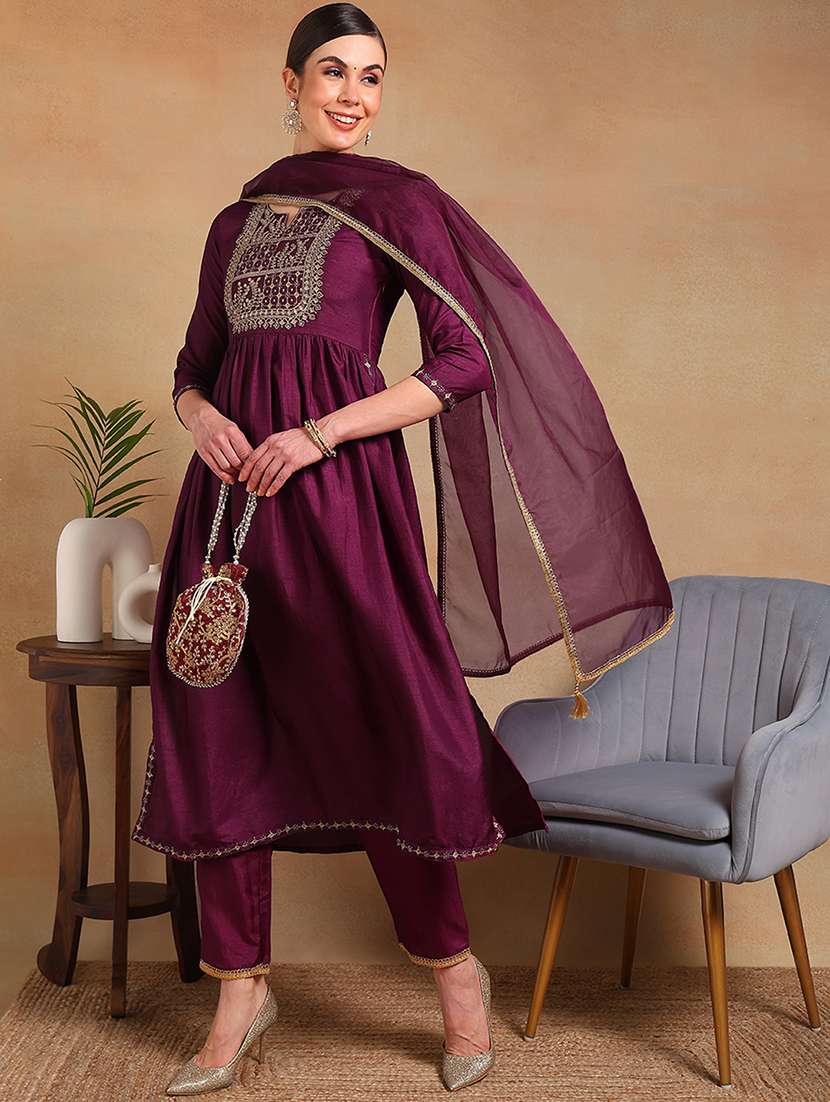 purple embroidered suit set