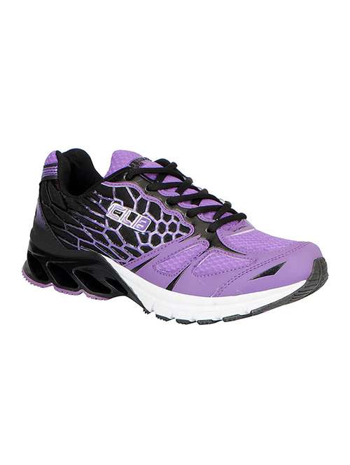 purple fabric sport shoes