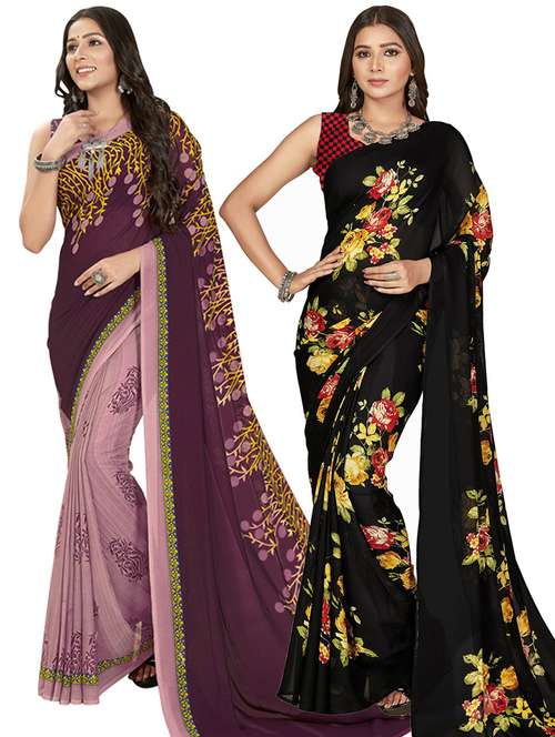 women pack of 2 casual wear combo sarees with blouse - 21427515 - Very Small Image - 1
